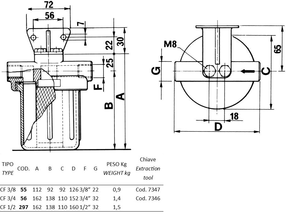 A=162 B=138 C=110 D=152 F=3/4P G=32